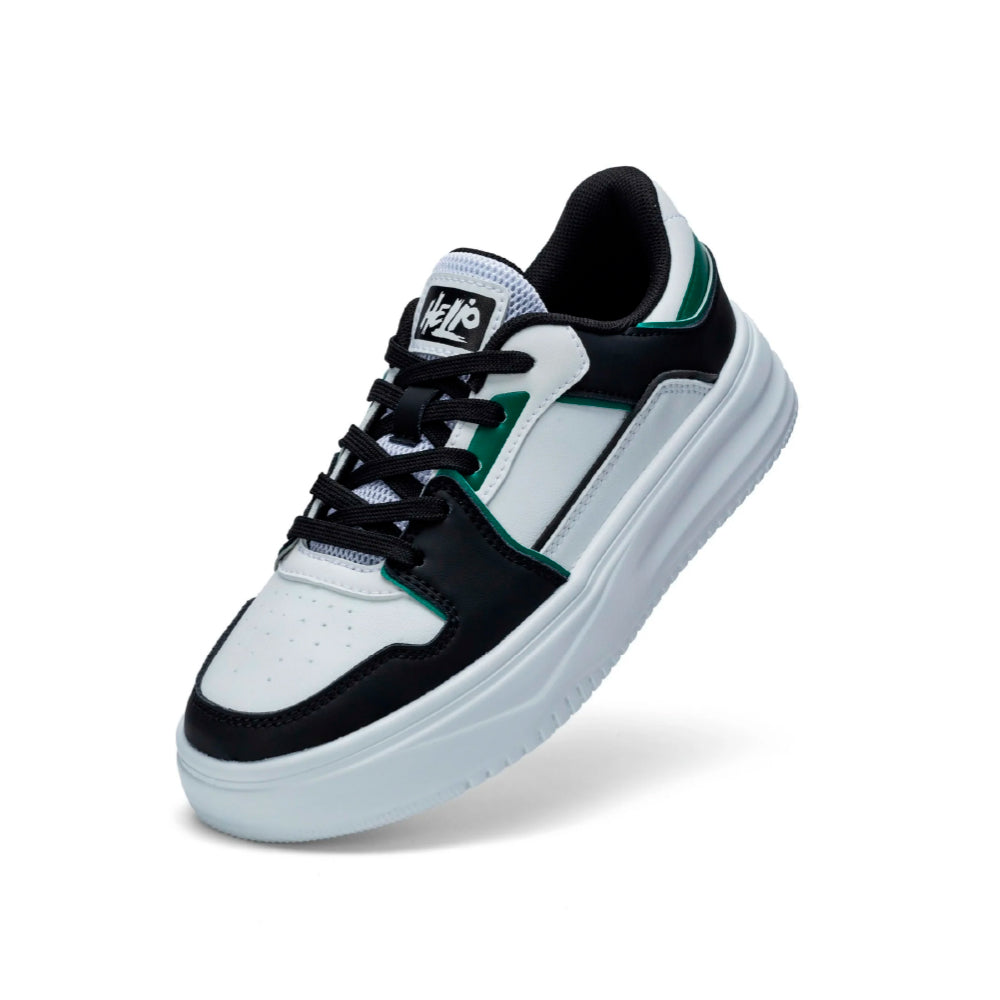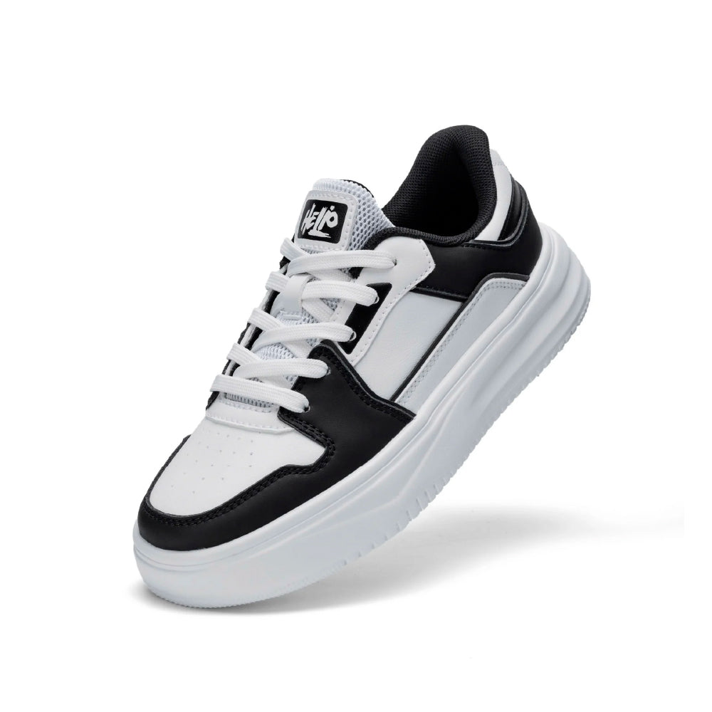 El modelo de zapato Helio es una elección indispensable en el armario de los adolescentes que aman un estilo básico, fácil de combinar pero a la vez deportivo. Tonos neutros en blanco y negro, fáciles de mezclar y combinar con todo tipo de atuendos, desde uniformes y ropa deportiva hasta atuendos de calle.